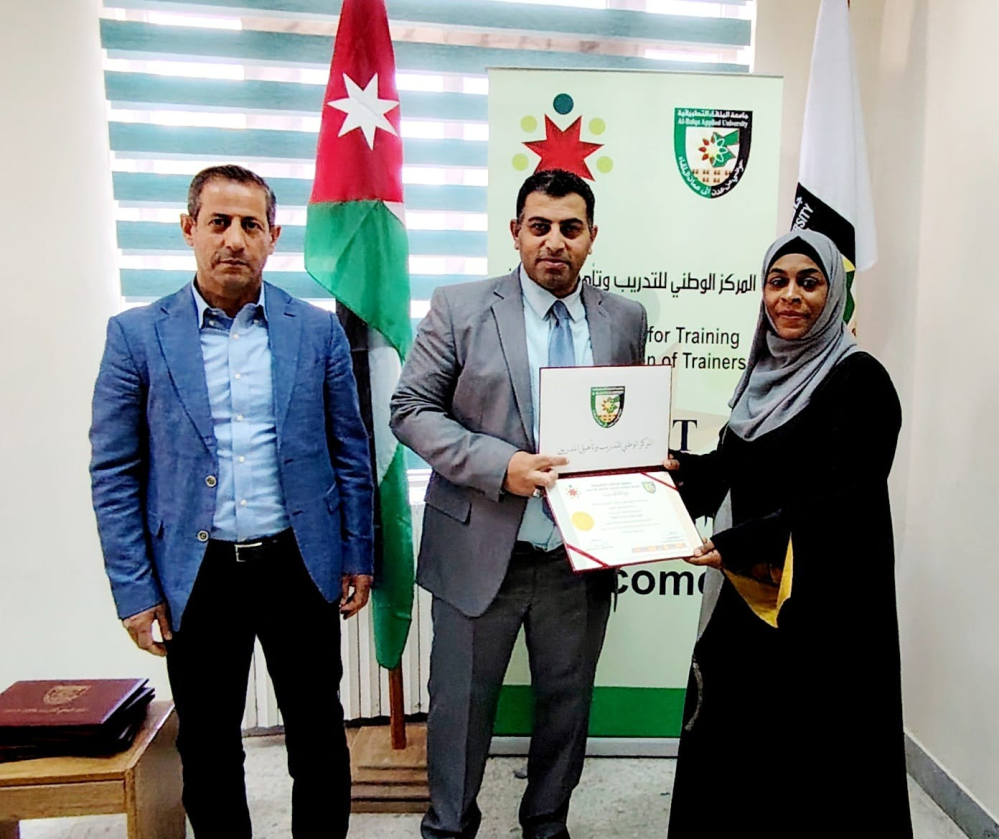 مندوباً عن عطوفة الأستاذ الدكتور أحمد فخري العجلوني رئيس جامعة البلقاء التطبيقية، رعى الدكتور جودت صافي الكساسبة، مدير المركز الوطني للتدريب وتأهيل المدربين، اختتام دورة الصحة العامة والسلامة المهنية، والتي عُقدت على مدار أربعة أيام بواقع 20 ساعة تدريبية، بمشاركة عدد من العاملين في القطاعين العام والخاص.
