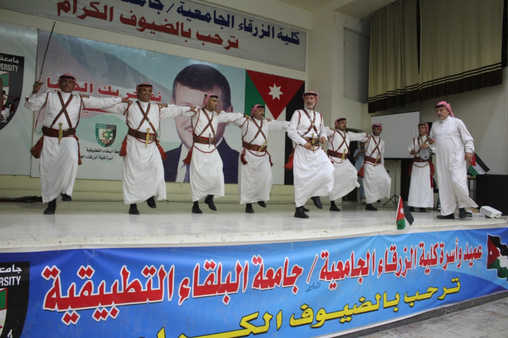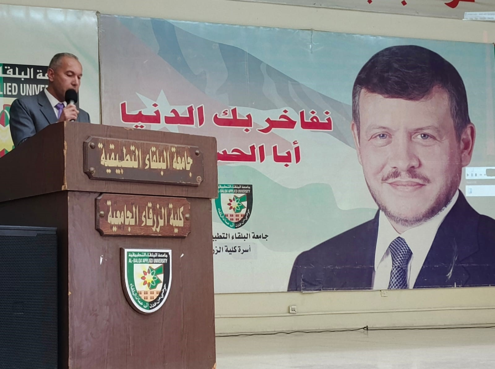 ضمن احتفالات جامعة البلقاء التطبيقية بعيد الاستقلال التاسع والسبعين للمملكة الأردنية الهاشمية وبتوجيهات من عطوفة الأستاذ الدكتور أحمد فخري العجلوني رئيس جامعة البلقاء التطبيقية رعى الأستاذ الدكتور زيد سليمان العدوان عميد كلية الزرقاء الجامعية الإحتفال الذي أقامته الكلية احتفالا في عيد الاستقلال والذي جاء بتنظيم من مساعد العميد للشؤون الطلابية و بحضور نائب العميد ومساعدي العميد ورؤساء الأقسام الأكاديمية والإدارية وعدد من أعضاء الهيئتين التدريسية والإدارية والطلبة.