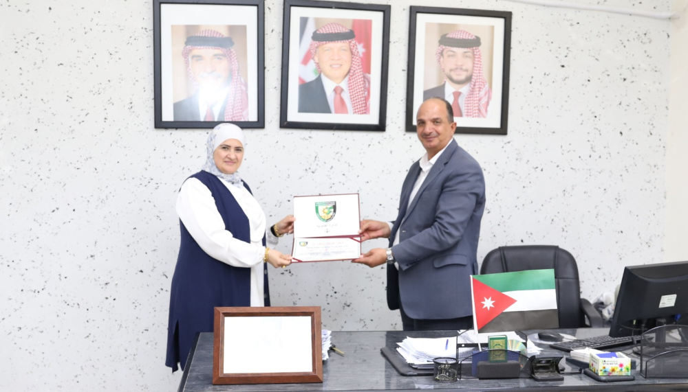 في إطار سعي جامعة البلقاء التطبيقية إلى تعزيز الأداء الوظيفي وترسيخ قيم التميز والتنافس الإيجابي، كرّم مدير الدائرة القانونية الأستاذ الدكتور مراد الشنيكات الموظفة عبير عبدالله محيسن العمايره بتسليمها شهادة الموظف المثالي لشهر ايلول 2025، وذلك بحضور مساعد مدير الدائرة السيد عماد الدبعي وأسرة الدائرة.