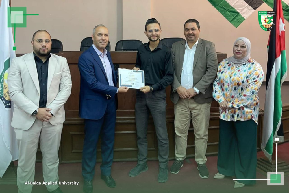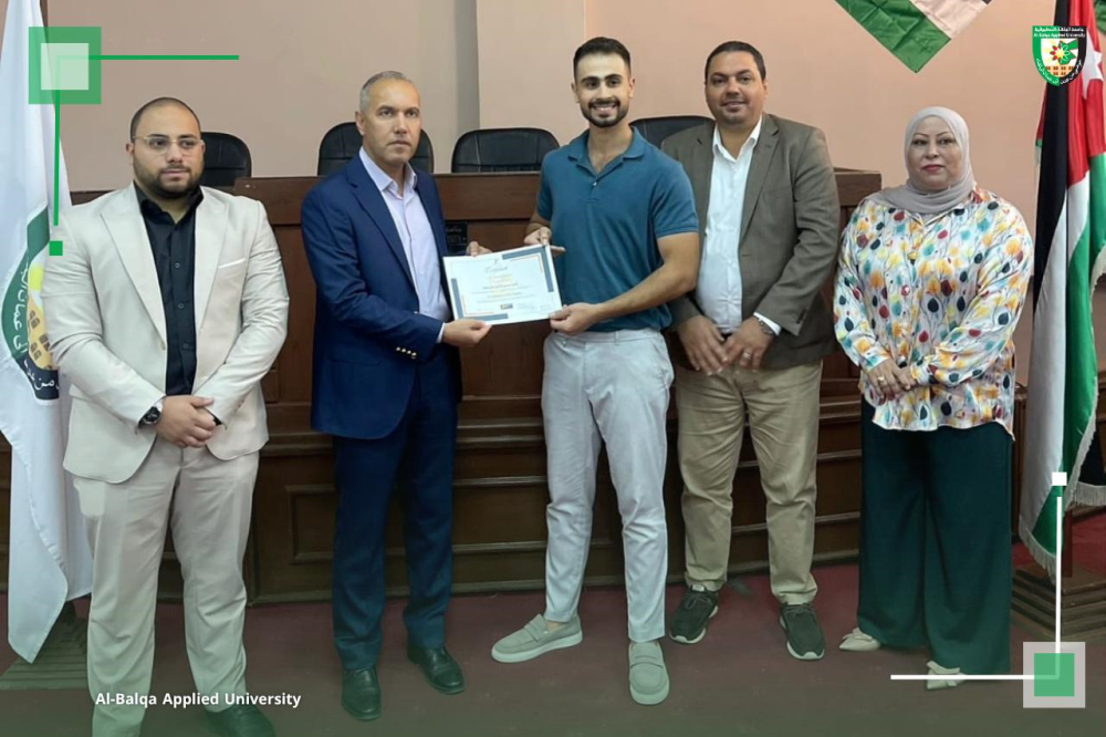 وفي الختام سلم عميد الكلية شهادات شكر وتقدير لكل من مدرب الدورة ومنسق هيئة شباب كلنا الأردن السيد سمير فاخوري ، والذي أشاد بدور الكلية في السعي المستمر لتنمية مهارات الطلبة والمجتمع المحلي، كما تم تسليم الشهادات للطلبة الذين استكملوا البرنامج التدريبي ضمن المعايير الخاصة بالبرنامج وعددهم يقارب (35 طالب) موزعين بين طلبة من الكلية وطلبة من المجتمع المحلي.