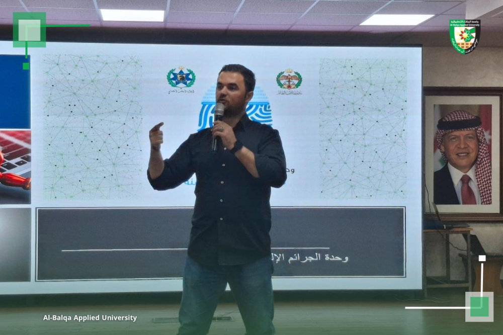 بتوجيهات من رئيس جامعة البلقاء التطبيقية الأستاذ الدكتور أحمد فخري العجلوني، وانطلاقًا من حرص الجامعة على رفع مستوى الوعي الأمني والرقمي لدى طلبتها والعاملين فيها، نظّم مركز الحاسوب في الجامعة ومديرية الأمن العام / وحدة مكافحة الجرائم الإلكترونية وبالتعاون مع   كلية عجلون الجامعية اليوم ، ورشة تدريبية بعنوان "حماية البيانات الشخصية والاحتيال المالي والابتزاز الإلكتروني"،بحضور نائب العميد الدكتور أيمن فريحات والمهندس عبد الحليم السعايده رئيس قسم الأمن السيبراني في الجامعة ومساعد العميد للشؤون الطلابية الدكتور صفوت الروسان وعدد من أعضاء الهيئتين الأكاديمية والإدارية وعدد من طلبة الكلية وذلك في قاعة الشهيد محمد العزام .