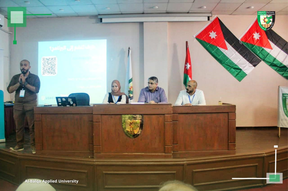 نظمت كلية الزرقاء الجامعية/جامعة البلقاء التطبيقية ورشة تدريبية بعنوان"مبرمجو الأردن" بالتعاون مع مؤسسة ولي العهد ووزارة الاقتصاد الرقمي والريادة وبالشراكة مبرمجو الأردن- JoCodes وذلك بحضور نائب عميد الكلية الدكتور ضياء حسن ومساعد العميد لشؤون التخطيط والتطوير والجودة الدكتورة لانا إغريب وعدد من أعضاء الهيئتين التدريسية والإدارية والطلبة.
