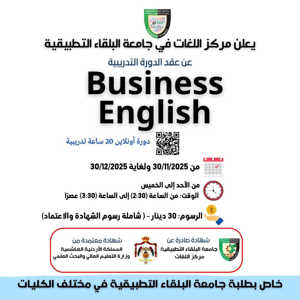 #جامعة_البلقاء_التطبيقية #مركز_اللغات #دورات_تدريبية #Business_English #اللغة_الإنجليزية #English_For_Work