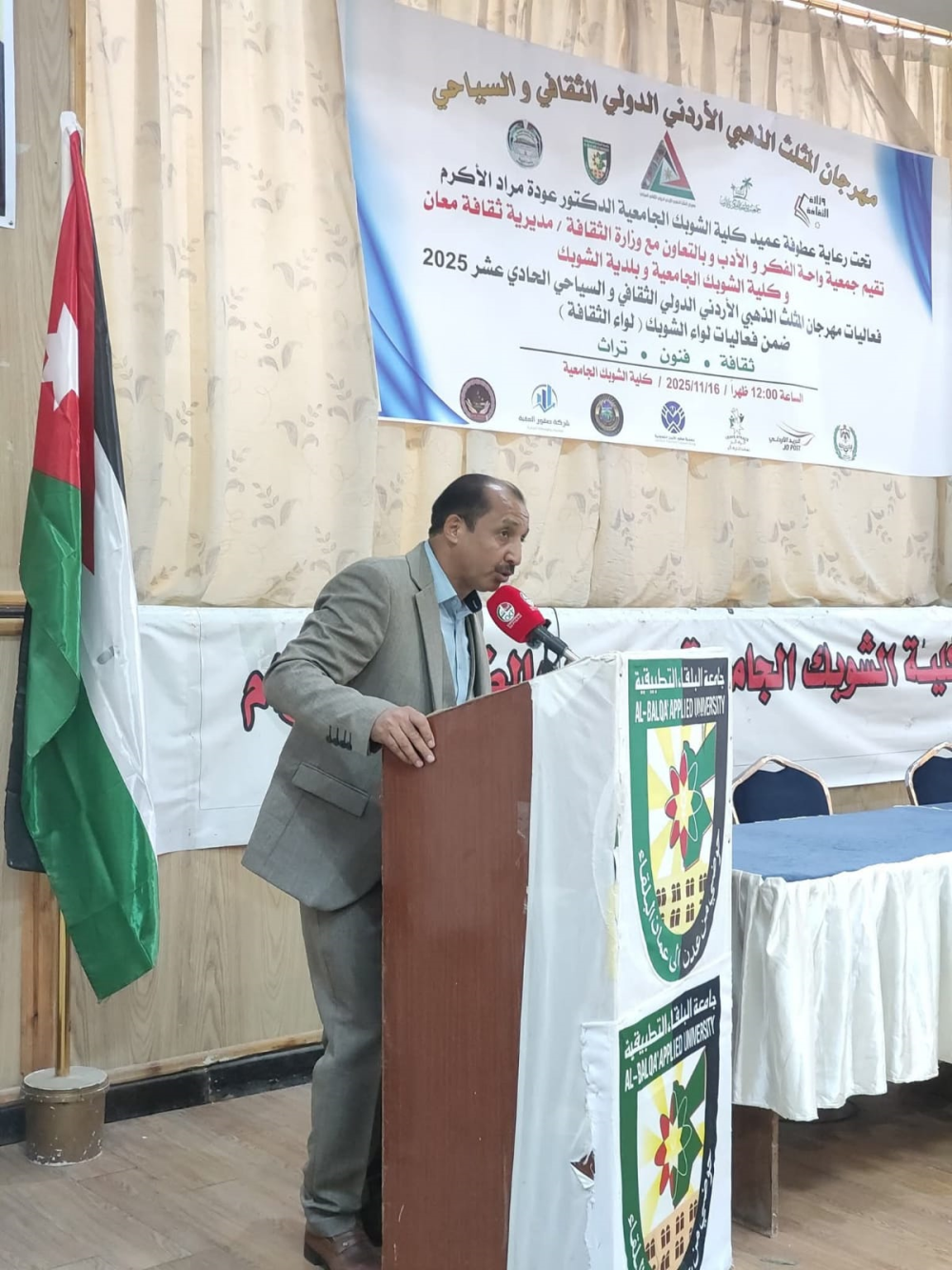 بحضور عميد كلية الشوبك الجامعية ، الأستاذ الدكتور عودة سليمان مراد، وضمن فعاليات «الشوبك مدينة الثقافة الأردنية لعام 2025»، أقيم في رحاب الكلية مهرجان المثلث الذهبي الأردني الدولي الثقافي والسياحي، بدعم من مديرية ثقافة معان.