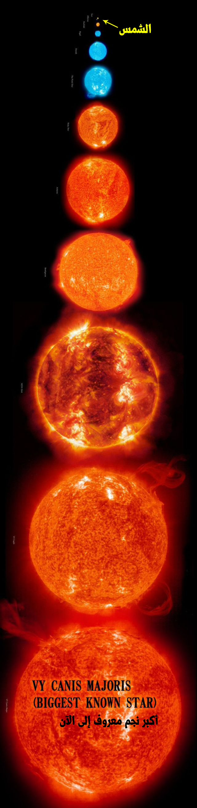 إنه أكبر نجم معروف لدى بني البشر, إسمه “كوكب VY الكلب الأكبر \ VY Canis Majoris”, وهو شديد الضخامة حيث أنه أكبر ما بين 1800 و 2200 مرة من الشمس وهو أكبر نجم موجود في مجرتنا “درب التبانة” وأيضا هو أحد أكثر النجوم في مجرتنا إشراقا ولمعانا وأول توثيق لرؤيته كانت بواسطة الفلكي الفرنسي “جيروم لالاندي \ Jérôme Lalande” عام 1801, وضل هذا الكوكب محل شك وخلاف بين العلماء حيث كان يعتقد أنه نجم ثنائي “أي نجمان كل منهما يدور حول الآخر” لأنه في غاية الضخامة حتى قطع هذا الشك في عام 1998 بواسطة صور عالية الدقة بواسطة تليسكوب هابل أكدت أنه نجم واحد وأن كل هذا السطوع صادر من كتلة واحدة فقط وأن قطر هذا النجم العملاق ثلاثة مليارات كيلومتر!! أي إذا فرضنا أنه وضع مكان شمسنا في مركز مجموعتنا الشمسية فإن سطح كوكب “VY الكلب الأكبر” سيأكل كل من عطارد والزهرة والأرض والمريخ وصولا للمنطقة الفاصلة ما بين المشتري وزحل!! وتبلغ المسافة الفاصلة بيننا وبين هذا النجم العملاق 4900 سنة ضوئية.