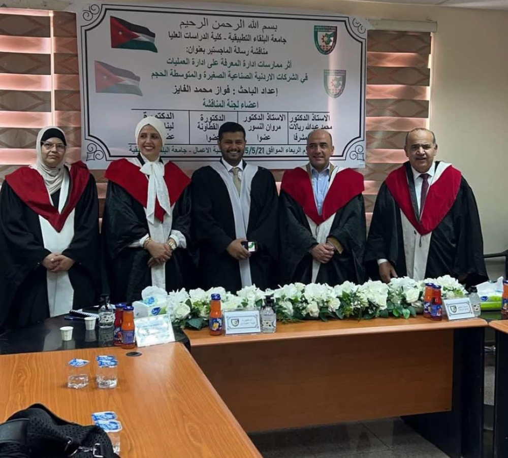 بحضور نخبة من اعضاء هيئة التدريس تم مناقشة رسالة الماجستير للباحث فواز محمد الفايز في جامعة البلقاء التطبيقية -كلية الاعمال، بعنوان: "أث ...