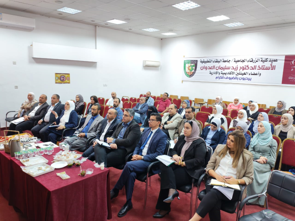 في إطار جهود كلية الزرقاء الجامعية بجامعة البلقاء التطبيقية نحو تحقيق التميز والارتقاء بمستوى الأداء الأكاديمي والإداري، وسعيها للحصول على شهادة ضمان الجودة المحلية الصادرة عن هيئة اعتماد مؤسسات التعليم العالي وضمان جودتها، استضافت الكلية فريقًا من مركز التطوير وضمان الجودة في جامعة البلقاء التطبيقية. وقد ضم الفريق مدير المركز الدكتور أيمن العلاوين، والدكتورة سوار أبو حمور، والدكتور حازم حسن، والسيد حنا حداد، والسيد نضال النسور، وذلك ضمن برنامج الزيارات الميدانية التي ينفذها المركز لكليات الجامعة.