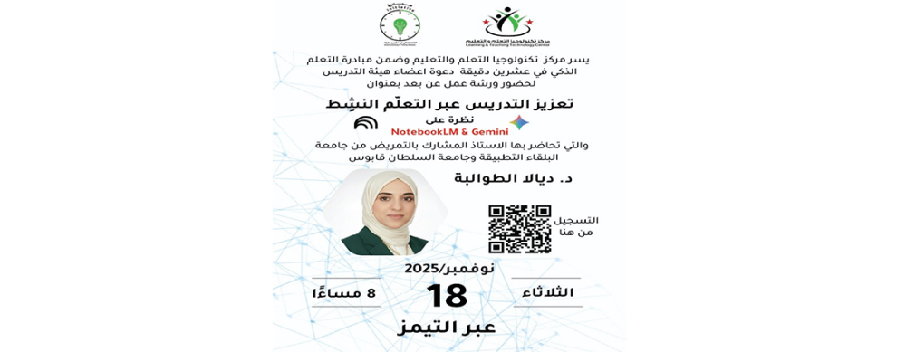يسر مركز تكنولوجيا التعلم والتعليم أن يطلق مبادرة "التعلم الذكي في عشرين دقيقة" والتي تضم سلسلة من ورش العمل القصيرة تطرح عن بعد، حو ...   التفاصيل