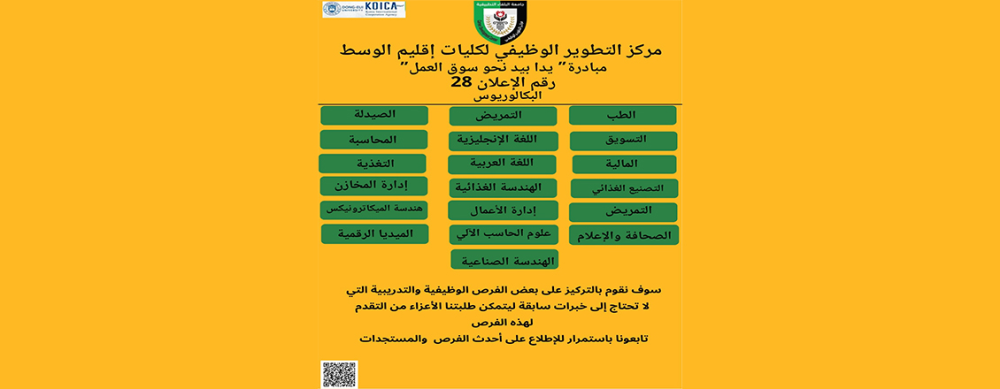 انطلاقًا من رؤية ورسالة كلية الأميرة عالية الجامعية / جامعة البلقاء التطبيقية في تحقيق الريادة والتميز في البرامج التعليمية وخدمة المجتمع المح ...   التفاصيل