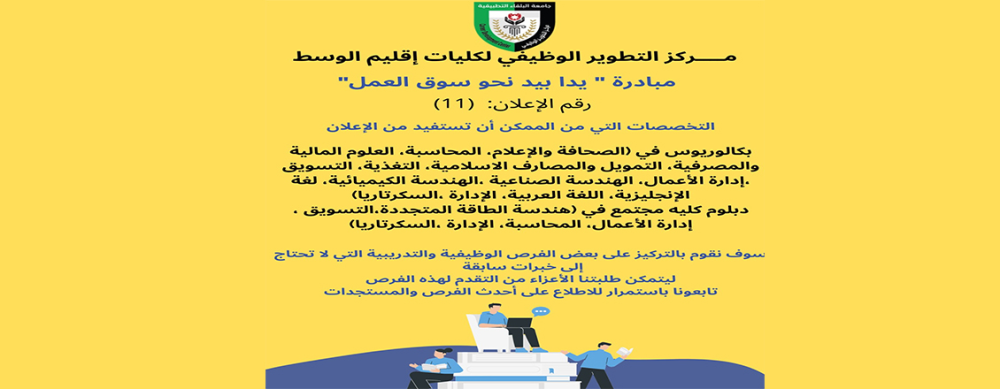 انسجامًا مع رسالة مركز التطوير الوظيفي في جامعة البلقاء التطبيقية وسعيه الدائم إلى تمكين الطلبة وتأهيلهم لسوق العمل المحلي والعالمي، يسرّنا دعوت ...