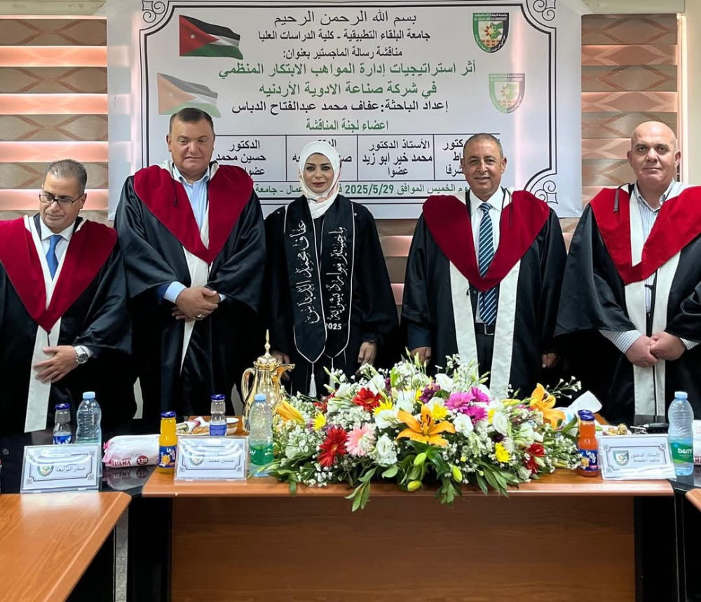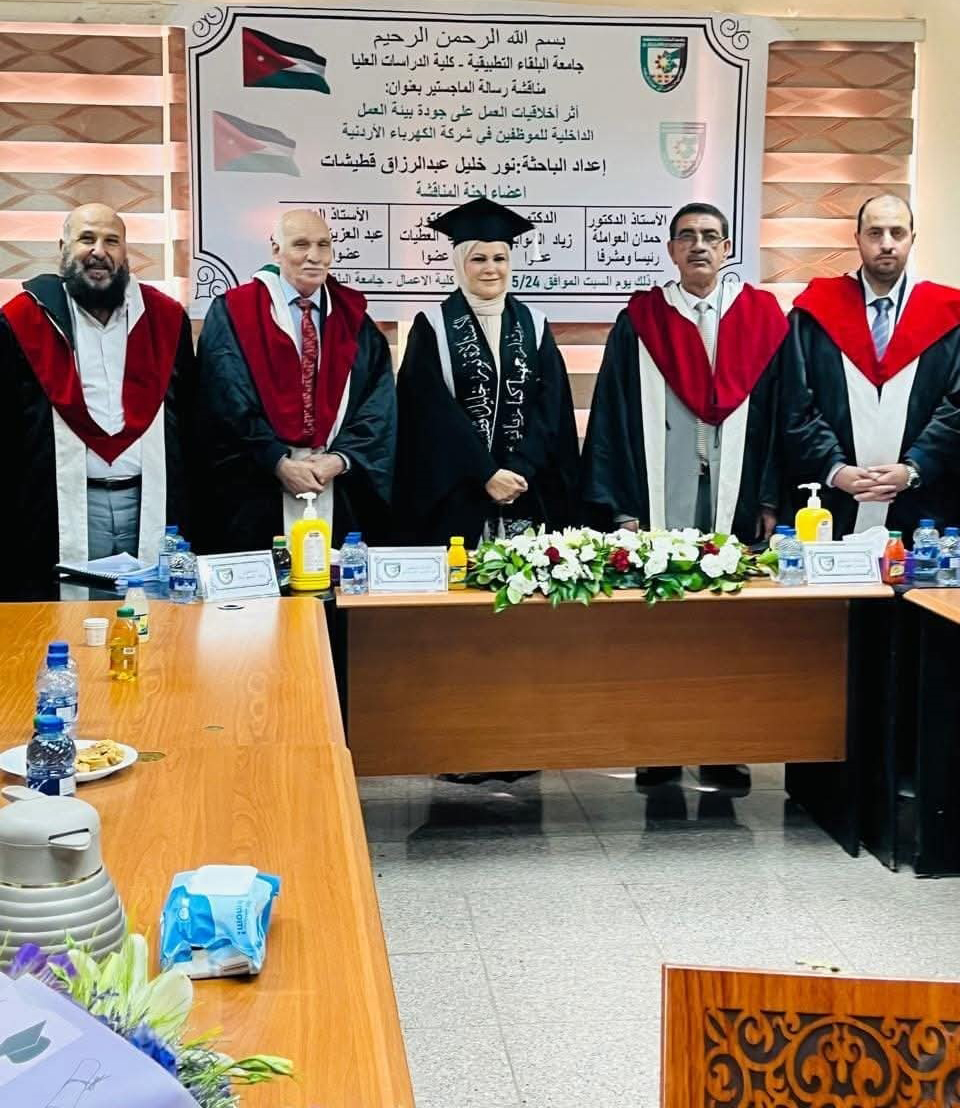 بحضور نخبة من أعضاء الهيئة التدريسية، تمت في كلية الأعمال – جامعة البلقاء التطبيقية مناقشة رسالة ماجستير للطالب حاتم عبدالرقيب بعنوان: