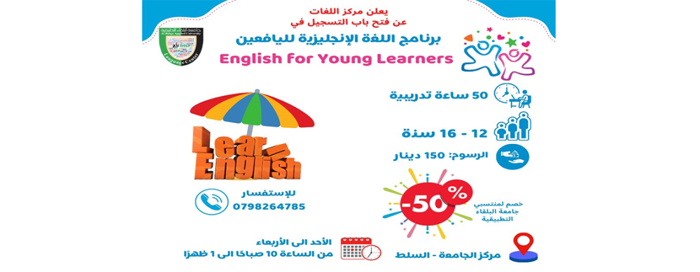 يعلن مركز اللغات في جامعة البلقاء التطبيقية عن فتح باب التسجيل في: برنامج اللغة الإنجليزية لليافعين (English for Young Learners)