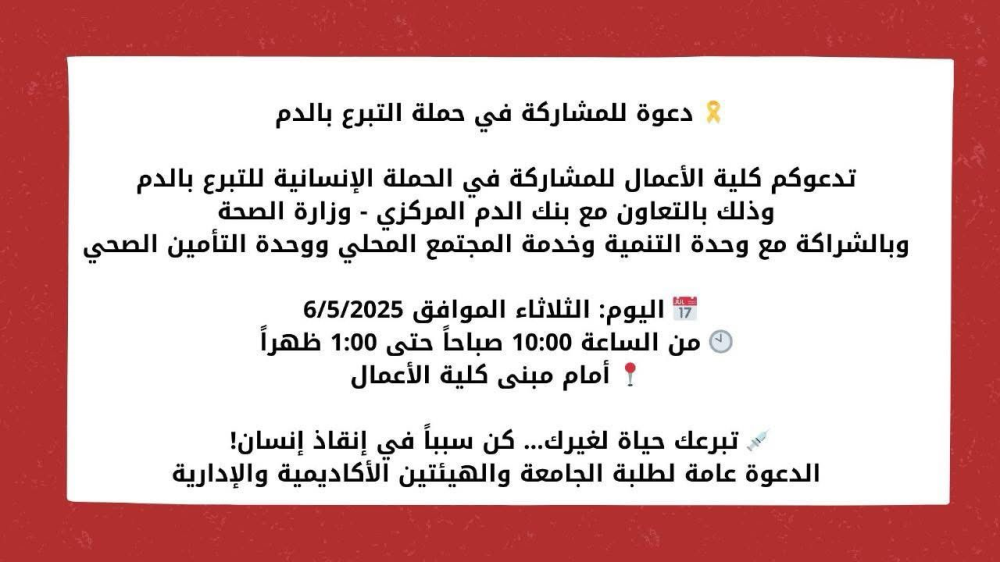 وبيّن الدكتور العجلوني أن فترة التسجيل ستبدأ اعتباراً من صباح يوم الأحد الموافق 2/11/2025، وتستمر حتى نهاية دوام يوم الأحد الموافق 30/11/2025.