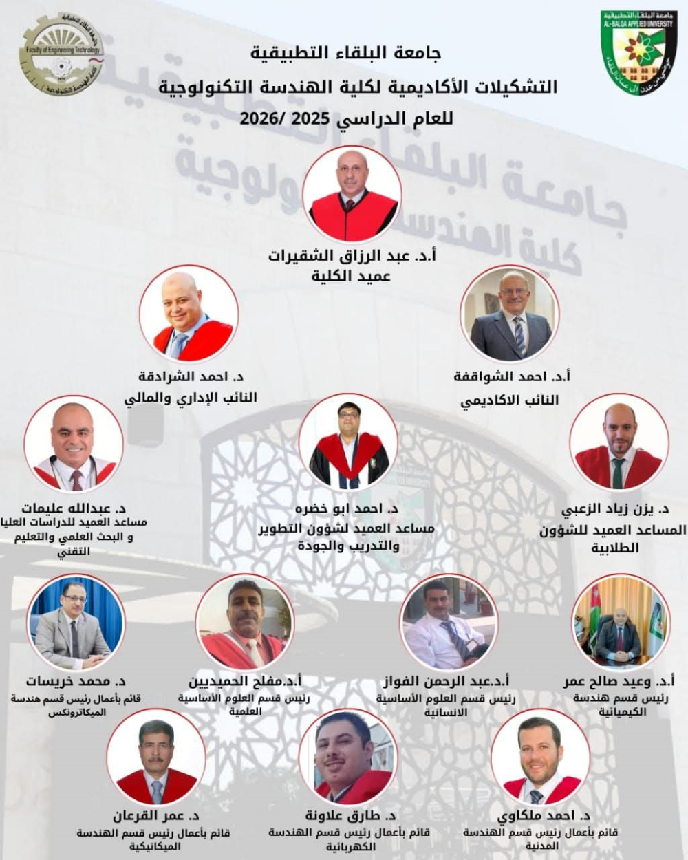التشكيلات الأكاديمية لكلية الهندسة التكنولوجية للعام الدراسي 2025/2026