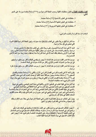 أ -مدة الدراسة لنيل درجة دكتور في الطب ( )M.Dست سنوات ،وتبين الخطة الدراسية للكلية المواد