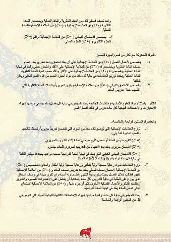 ( )%50للامتحان النهائي الكتابي الذي يعقد في نهاية السنة الدراسية حسب مواعيد يحددها مجلس الكلية