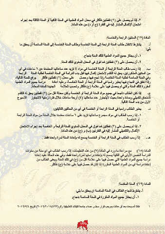 وفي السنة السادسة لطلبة السنة الخامسة وإذا نجح فيها وحصل على معدل ( )2نقطتين فأكثر يرفع للسنة التالية،