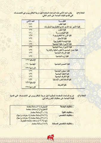 المادة ( :)6توزع الساعات المعتمـدة المطلوبة لنيل درجة البكالوريوس في التخصصات التي تقدمها