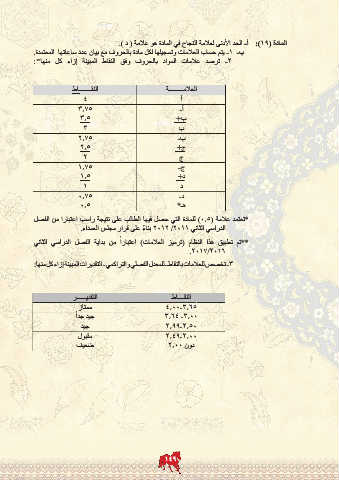 المادة ( :)19أ -الحد الأدنى لعلامة النجاح في المادة هو علامة ( د ).
