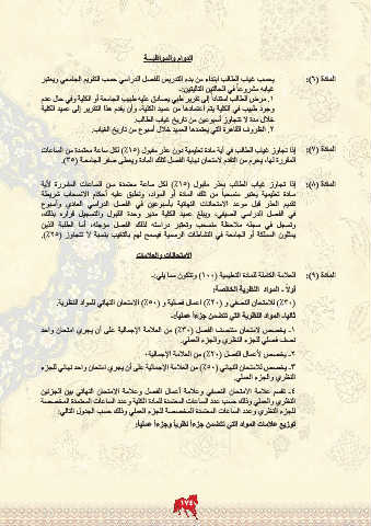 النظري والعملي وذلك حسب عدد الساعات المعتمدة للمادة الكلية وعدد الساعات المعتمدة المخصصة