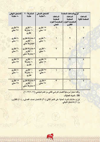 الامتحان النهائي المشاركة 20 الامتحان النصفي توزيع الساعات المعتمدة