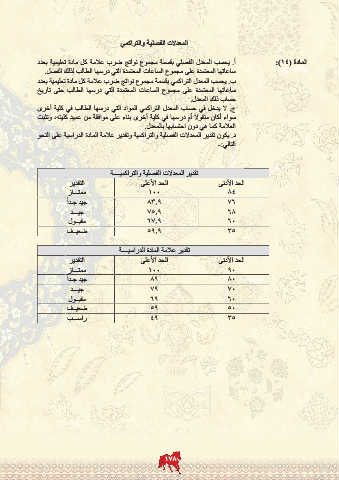 ثد .يكون تقدير المعدلات الفصلية والتراكمية وتقدير علامة المادة الدراسية على النحو