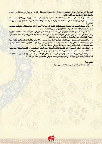 للتخصص الذي قبل به بالاضافة الى امتحانات المستوى او المواد الاستدراكية (اللغة العربية واللغة الانجليزية ومهارات