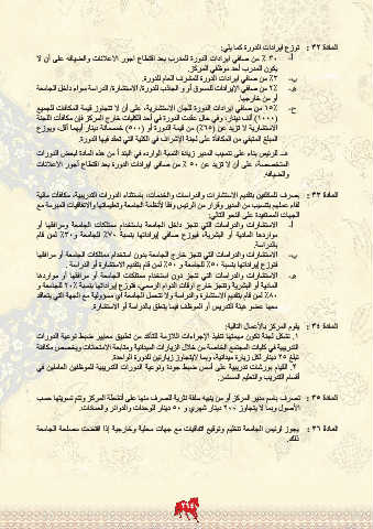المادة : 33يصرف للمكلفين بتقديم الاستشارات والدراسات والخدمات ،باستثناء الدورات التدريبية ،مكافآت مالية