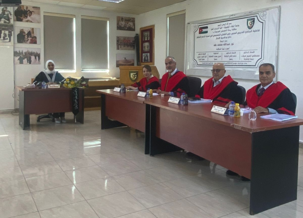 مناقشة رسالة ماجستير للطالبة لجين عاطف رضوان الخليفات في كلية الأميرة عالية الجامعية