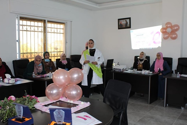 بدورها اوضحت المثقفة الصحية السيدة سارة الزعبي ان الكشف المبكر يسهم في نوعية وتحديد ونتيجة معالجة حالات هذا النوع من السرطانات  وزيادة معدلات الشفاء  مؤكدة أهمية الجهود التي يبذلها البرنامج الوطني لسرطان الثدي الذي يسعى للحفاظ على المجتمع والمرأة .