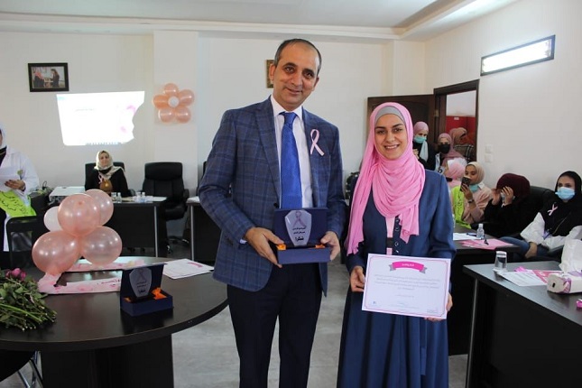 في بداية الفعالية عرف عميد الكلية الدكتور خالد  بالبرنامج الأردني لسرطان الثدي وهو مبادرة وطنية شاملة تعمل بقيادة مركز الحسين للسرطان ووزارة الصحة وتهدف لرفع مستوى الوعي حول أهمية الكشف المبكر ، فالكشف المبكر  من أهم استراتيجيات الوقاية  وتشخيص المرض بمراحله المبكرة لتسهيل إجراءات التشخيص والمعالجة والشفاء بإذن الله  .