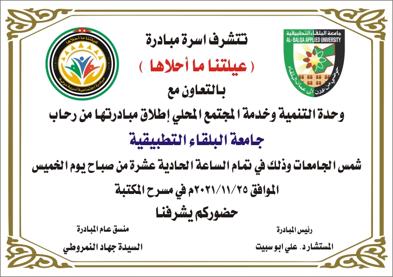 اطلاق مبادرة (عيلتنا ما أحلاها) من رحاب جامعة البلقاء التطبيقية