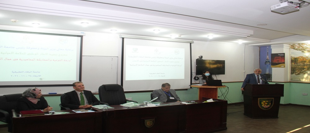 افتتح مساعد امين عام وزارة البيئة المهندس رائد بني هاني مندوبا عن وزير البيئة وبحضور نائب رئيس جامعة البلقاء التطبيقية للشؤون الكليات الاستاذ الدكتور ناصر الكلوب مندوبا عن رئيس الجامعة وعميد كلية الزراعة التكنولوجية الاستاذة الدكتورة امل العبادي الورشة التوعوية لاقليم الوسط في مجال التوعية والمشاركة الجماهيرية في مجال السلامة الاحيائية في الأردن والتي نظمتها كلية الزراعة التكنولوجية في جامعة البلقاء التطبيقية بالتعاون مع وزارة البيئة وبمشاركة ممثلين عن مديريات الزراعة والصحة والجمعيات البيئة في محافظات اقليم الوسط وأعضاء الهيئة التدريسية في كلية الزراعة التكنولوجية .