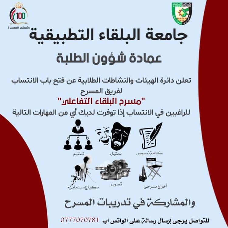 إعلان للطلبة المتميزين في المجال المسرحي والتمثيل