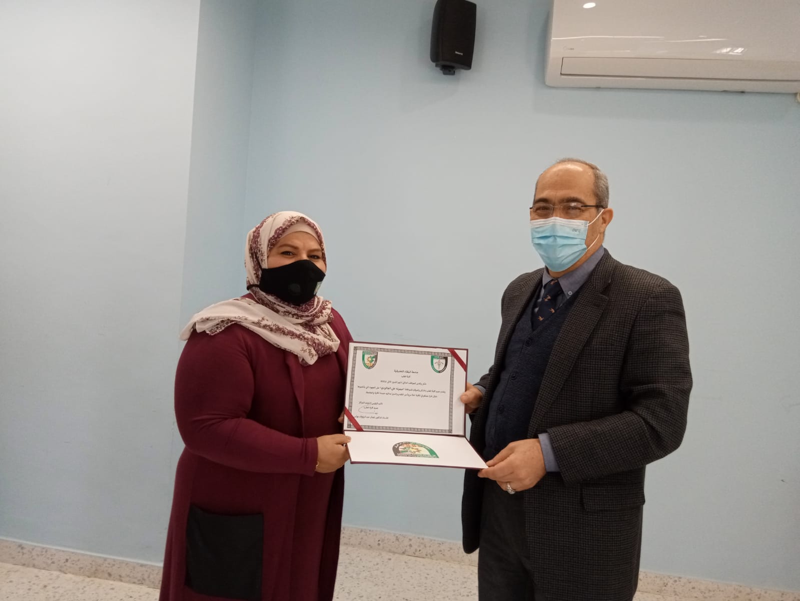 انطلاقاً من رؤية جامعة البلقاء التطبيقية في الريادة والإبتكار والتميز وبهدف تحسين الأداء والتطوير والتشجيع على التنافس في العمل لدى الموظفين، سلم عميد كلية الطب الأستاذ الدكتور نضال يونس شهادة الموظف المثالي عن شهر تشرين الثاني 2021 للموظفة ميمونة علي الجالودي .