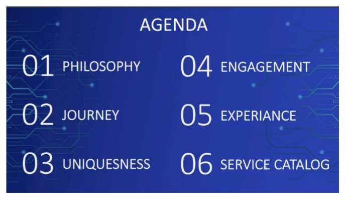 ? طبيعة عمل الشركة ومخططات عملها ابتداء من جمع المعلومات data acquisition ، مرورا بالمعالجة المسبقة للبيانات لضمان جودتها، وانتهاء ببناء نماذج البيانات Data models ودمج تلك النماذج لتكون جزءا من نظام تحكم ذو تغذية راجعة متكامل لضمان مساعدة متخذي القرار لتطوير مؤسساتهم ذات العلاقة وضمان تدفق بيانات ذات جودة عالية لنظام التحكم الذي يستخدم تقنيات الذكاء الاصطناعي.
