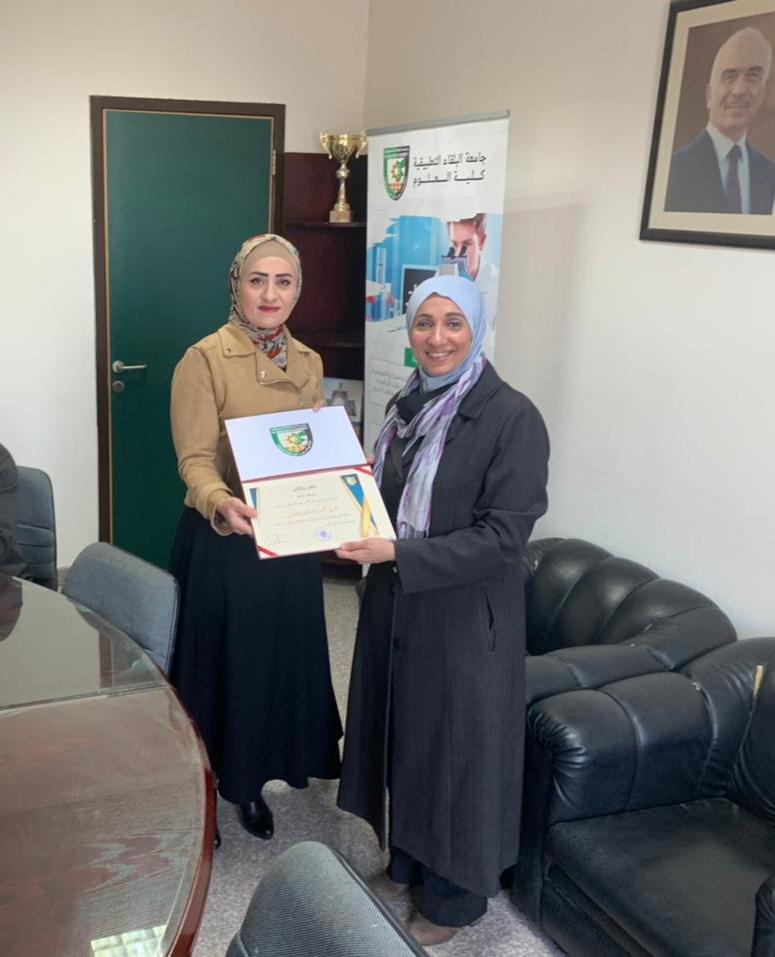 انسجامًا مع توجهات إدارة الجامعة في تحسين الأداء والتطوير وتحفيز قيم التنافس البناء في العمل لدى الموظفين كرمت عميدة كلية العلوم الاستاذ الدكتورة هاله الجبر *شهادة الموظف المثالي (شهادة تقديرية) عن شهر كانون الاول /2021 للموظفة هديل حميد خريسات
