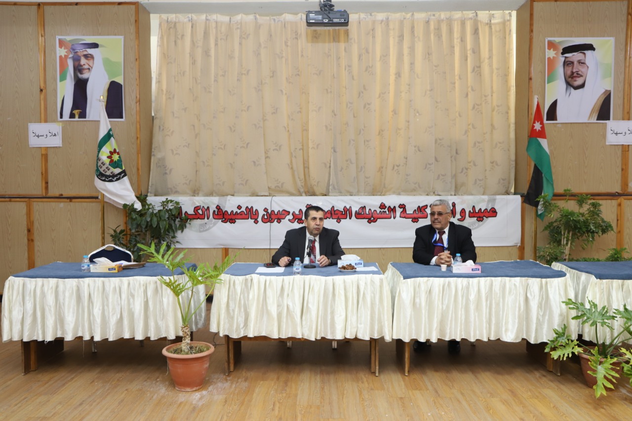 كما التقى الدكتور العجلوني أعضاء الهيئتين التدريسية والإدارية في الكلية بحضور عميد الكلية الدكتور عوده مراد، حيث استمع الى أبرز احتياجاتهم الوظيفية وملاحظاتهم على عدد من التعليمات والأنظمة في الجامعة.