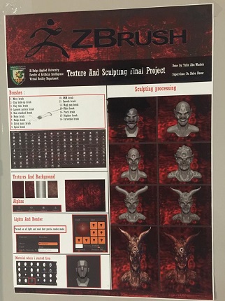 انطلاقاً من رؤية ورسالة الجامعه بأهمية تشجيع الطلبة على مواكبة أحدث التقنيات العلمية وتطبيقها من خلال المشاريع العملية، رعى عميد كلية الذكاء الاصطناعي الدكتور حمزة الدباس العرض التقديمي الذي أقامه طلبة تخصص الواقع الافتراضي في مختبر الواقع الافتراضي وبحضور رئيس قسم الانظمة المؤتمتة الدكتور محمد الوديان وبإشراف المدرسة هبة النسور، حيث قام الطلبة في مادة نسج الرسوم والنحت بعرض المشاريع التي قاموا بتصميمها خلال هذا الفصل ومناقشتها وعرض العديد من الانجازات العملية في نحت ونسج تصاميم ثلاثية الأبعاد باستخدام برمجية النحت الرقمي Z-brush والطباعة ثلاثية الابعاد، وقام الدكتور حمزه الدباس بالتأكيد على أهمية تعزيز التطبيق العملي للمفاهيم النظرية في المواد الدراسية، والسعي إلى تقديم مستوى متميز من البرمجيات التي تساعد على التعليم الذي يسعى للربط بين الجانب النظري والعملي التطبيقي وتوفير أحدث البرمجيات في المختبرات التي تواكب الحداثة والتقدم للطلبة في مجال التصميم ثلاثي الابعاد، ورفد المجتمع المحلي والإقليمي بخريجين مؤهلين تقنياً، وقادرين على المنافسة، والمساهمة بفعالية في سوق العمل المرتبط بمجال التصميم في الواقع الافتراضي، ووضع بصماتهم الإبداعية حيثما كانوا.