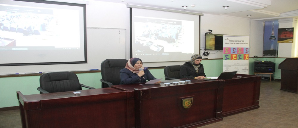 بدورها قدمت رئيس فرع الشرق الاوسط لرابطة خريجي برامج ماري كوري الدكتورة اماني العواملة محاضرة تعريفية عن الرابطة كما و قدم السادة أعضاء مجلس الادارة في الرابطة من خلال تقنية الزوم محاضرات تفصيلية بما يتعلق بأهداف وأنواع المنح المقدمة وطريقة التقدم لها. هذا وقد شارك في الورشة التي اقيمت عبر تقنية الزووم حوالي 220 مشارك من مختلف الدول .