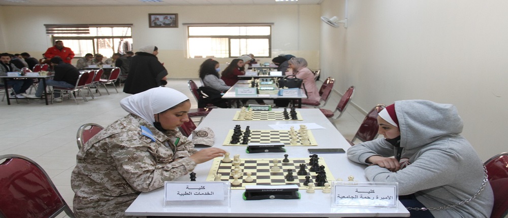 اختتمت في كلية الخدمات الطبية الملكية بطولة الشطرنج للطلاب والطالبات أولى بطولات الاتحاد الرياضي للكليات الجامعية والجامعية المتوسطة بحضور الدكتور عزيز الرحامنه رئيس الاتحاد الرياضي للكليات الجامعية والجامعية المتوسطة والعقيد الطبيب منيره حجازي أمر كلية الخدمات الطبية الملكية والسيد مصطفى أبو كوش رئيس قسم الاتحاد الرياضي وبمشاركة كليات حكومية وعسكرية وخاصة.