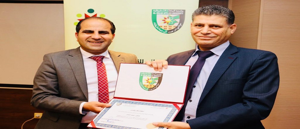 مندوبا عن رئيس جامعة البلقاء التطبيقية الاستاذ الدكتور احمد فخري العجلوني رعى مدير المركز الوطني للتدريب وتأهيل المدربين الدكتور حسن خالد العوامله اختتام دورة ادارة المشاريع pmp"" والتي عقدت لعدد من المؤسسات والدوائر الحكومية ولعدد من جهات خاصة.
