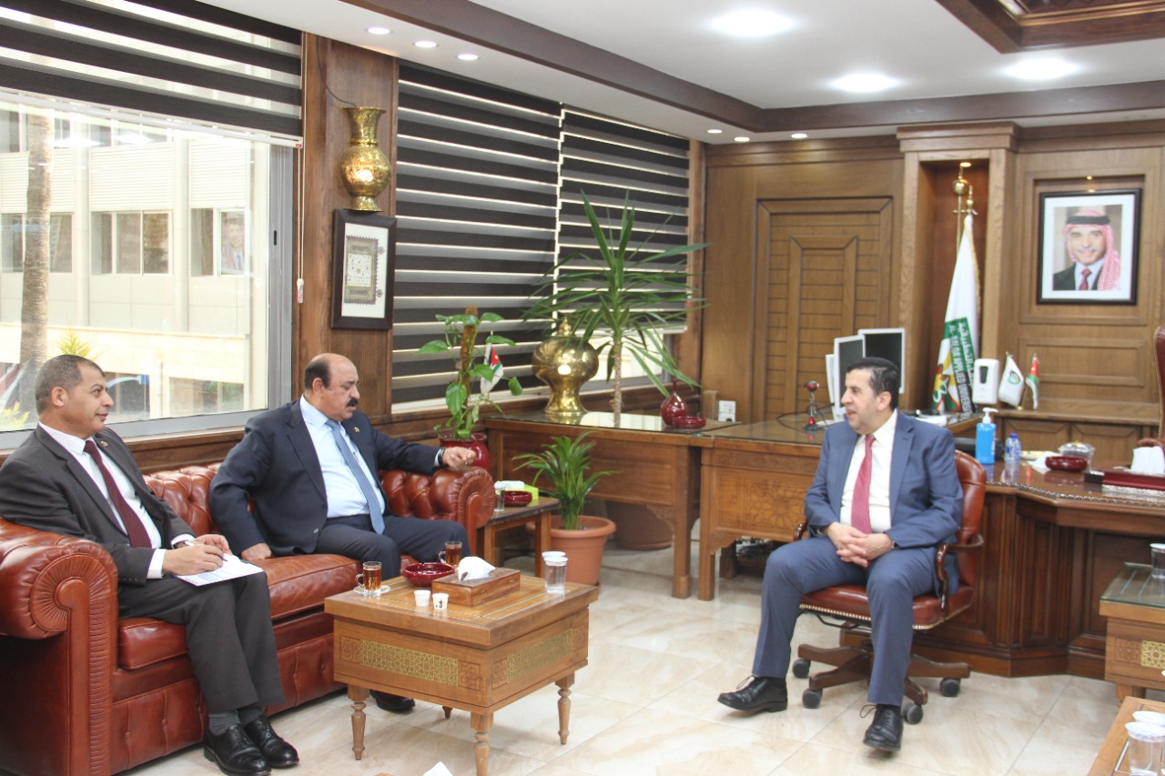 التقى رئيس جامعة البلقاء التطبيقية الأستاذ الدكتور احمد فخري العجلوني اليوم الأربعاء في مكتبة مدير عام المؤسسة الاقتصادية والاجتماعية للمتقاعدين العسكريين والمحاربين القدماء اللواء الركن المتقاعد إسماعيل الشوبكي .