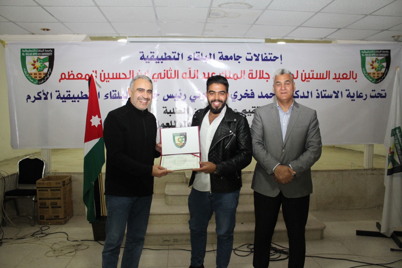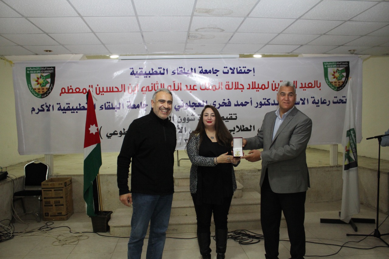 بمناسبة العيد الستين لميلاد حضرة صاحب الجلالة الهاشمية الملك عبدالله الثاني أبن الحسين المعظم رعى عميد شؤون الطلبة في جامعة البلقاء التطبيقية الدكتور عزيز الرحامنه مندوبا عن رئيس جامعة البلقاء التطبيقية الأستاذ الدكتور احمد فخري العجلوني فعاليات الملتقى الطلابي الإبداعي الأول للعمل التطوعي الذي نظمته عمادة شؤون الطلبة بالتعاون مع وزارة الشباب في مدينة العقبه بحضور عميد كلية العقبة الجامعية الدكتور حسان شاهين والدكتور محمد الجعافرة مندوب وزارة الشباب.