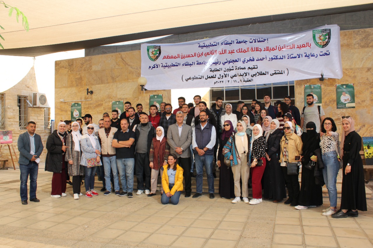 الدكتور عزيز الرحامنة قال في حفل ألافتتاح :أن عقد الملتقى الطلابي الإبداعي الأول للعمل التطوعي يأتي تزامنا مع احتفالات المملكة الأردنية الهاشمية بالعيد الستين لحضرة صاحب الجلالة الهاشمية الملك عبدالله الثاني ابن الحسين المعظم مشيرا بان هذه الملتقيات تعد من الأنشطة الهامة التي تحرص عمادة شؤون الطلبة في جامعة البلقاء التطبيقية على تنظيمها إيمانا بضرورة تنمية عقول الطلبة وإثرائها بالمعلومات والمهارات اللازمة التي تمكنهم من صقل شخصيتهم ليكونوا فرسان علم وميدان بعد تخرجهم.