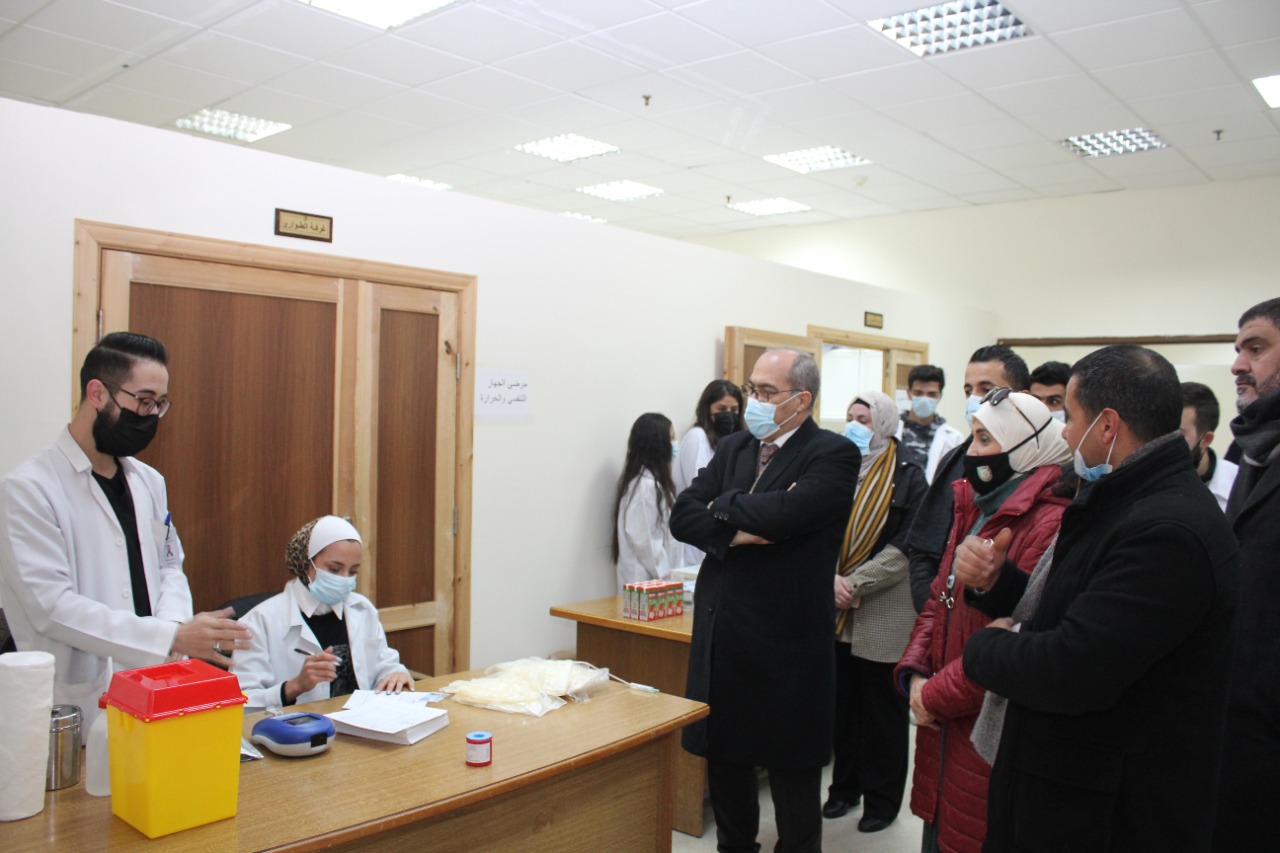مندوبا عن رئيس جامعة البلقاء التطبيقية الأستاذ الدكتور احمد فخري العجلوني رعى نائب الرئيس لشؤون المراكز العلمية عميد كلية الطب الاستاذ الدكتور نضال يونس حملة التبرع بالدم والتي نظمتها كلية العلوم قسم المختبرات الطبية بالتعاون مع مستشفى السلط الجديد بحضور الأستاذ الدكتورة هاله جبر عميد كلية العلوم والدكتورة إسراء النسور مديرة المختبرات الطبية في مستشفى السلط الجديد والدكتور محمد القصير مدير دائرة المعالجات الطبية وذلك في عيادة مركز الجامعة.