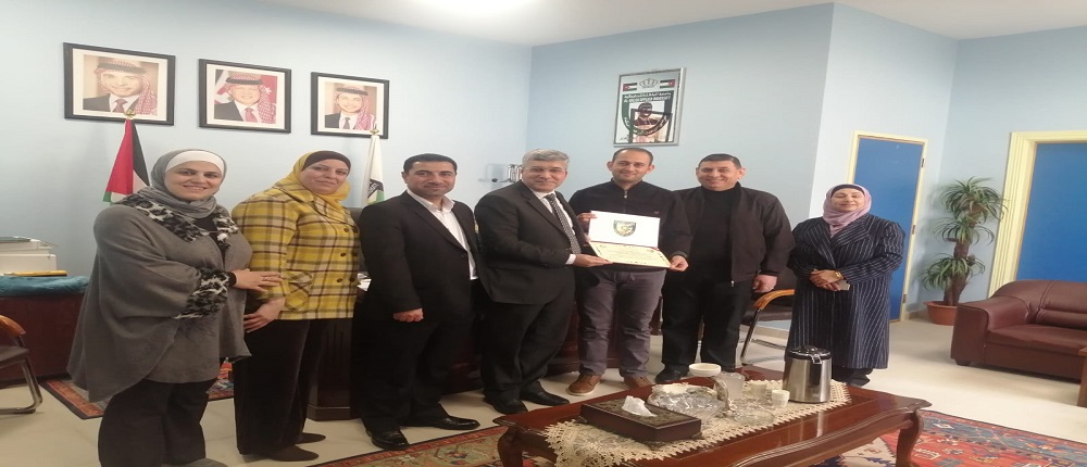 سلم عميد كلية اربد الجامعية الاستاذ الدكتور عبد المطلب الخضراوي شهادة الموظف المثالي عن شهر آذار للزميل الدكتور مراد الذيابات تقديرا لجهوده المتميزة في العمل.