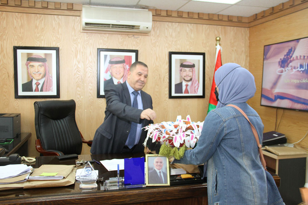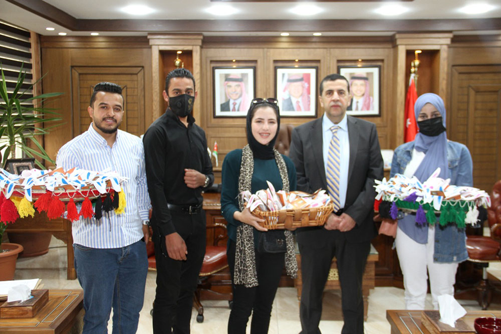 رئيس جامعة البلقاء التطبيقية الاستاذ الدكتور احمد فخري العجلوني قدم اثناء استقباله لطلبة نادي الخدمة في مكتبه الشكر على هذا المبادرة الطيبة التي تجسد المعاني والسمات الكريمة لشهر رمضان المبارك مشيرا الى ان مثل هذه المبادرات تعزز القيم الاسلامية وروح التعاون وعمل الخير والعطاء لدى الطلبة ، داعيا طلبة الجامعة الى الانخراط في النشاطات الجامعية التي تنظمها عمادة شؤون الطلبة والتي تعزز في انفسهم المسؤولية الاجتماعية والعمل الجماعي الايجابي .