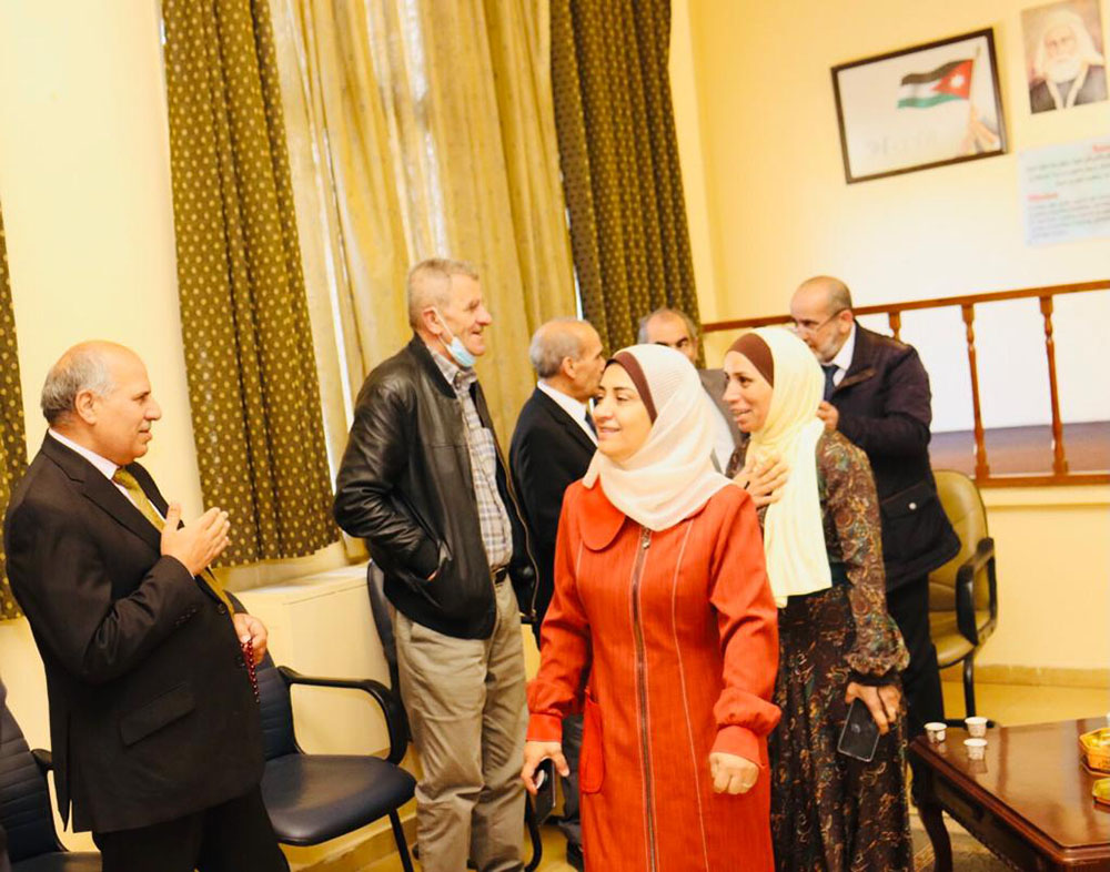 تبادل التهاني بمناسبة عيد الفطرالسعيد. حيث أستقبل عميد الكلية الدكتور احمد سلامة عواد ونوابه ومساعديه أعضاء الهيئتين التدريسية والادارية في مركز الاميرة جنة بنت غازي الثقافي في جو أسري.