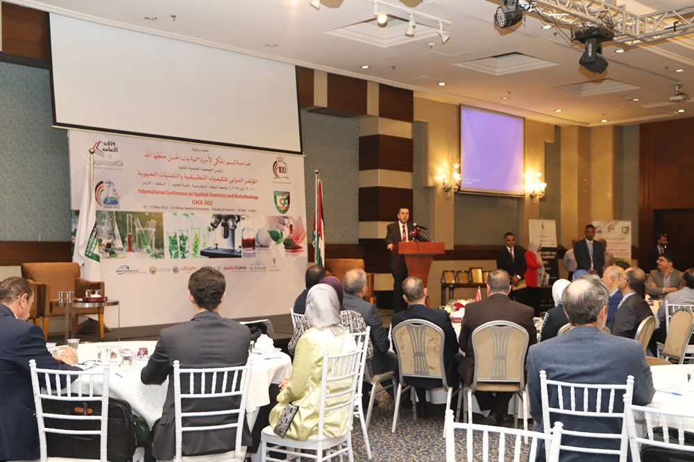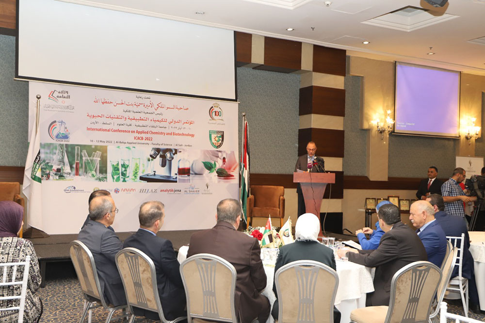 مندوباً عن سمو الأميرة سمية بنت الحسن، رئيس الجمعية العلمية الملكية، افتتح اليوم الثلاثاء نائب رئيس الجمعية العلمية الملكية للتكنولوجيا الدكتور نبيل الفيومي وبحضور رئيس جامعة البلقاء التطبيقية الأستاذ الدكتور احمد فخري العجلوني، أعمال المؤتمر الدولي الأول للكيمياء التطبيقية والتقنيات الحيوية والذي تنظمه كلية العلوم في جامعة البلقاء التطبيقية من 10_12/ ايار في عمان.